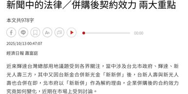 本所蕭富庭律師接受經濟日報採訪分享「併購後契約效力 兩大重點」